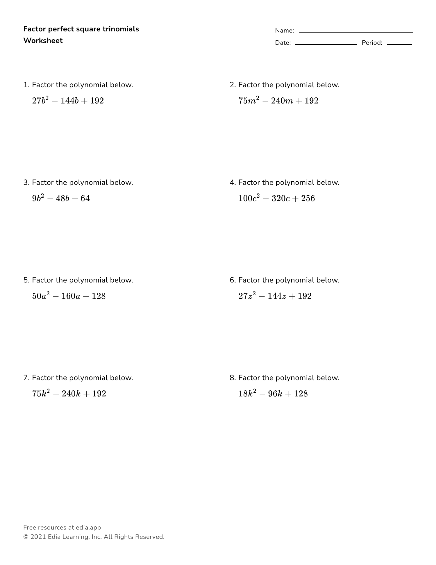 As you continue to practice with the worksheet, you’ll start to notice that factoring simple trinomials becomes more intuitive. You’ll develop a systematic approach to breaking down quadratic expressions, making the process easier and more manageable. With consistent practice, you’ll build confidence in your factoring abilities and be able to tackle more complex problems with ease.