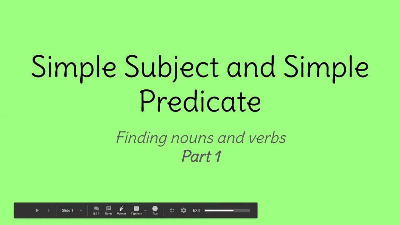 Part 1 Of 2 Simple Subjects And Simple Predicates YouTube